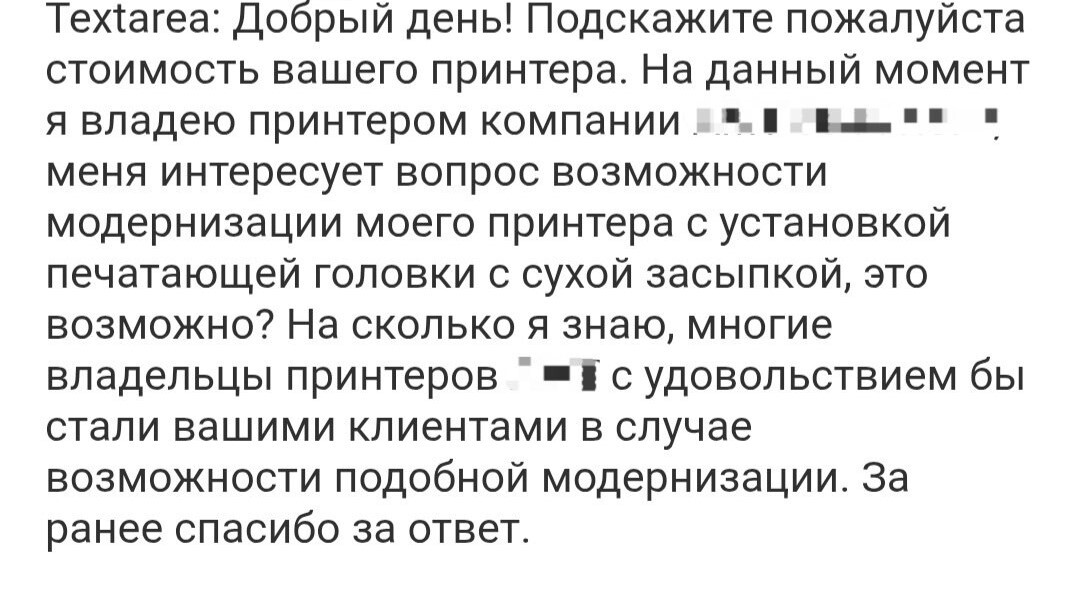 Мы регулярно получаем запрос на приобретение экструдера Лерто, как в России, так из-за рубежа. Почему мы не продаем отдельно экструдер отвечать индивидуально приходится часто, на этот раз отвечаем сразу на широкую аудиторию. Ниже можете ознакомиться с запросом.